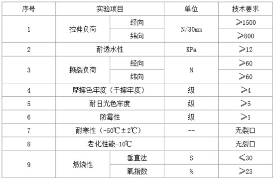 具有防水、防寒、防霉、阻燃、耐老化功能,并具有材輕、抗拉強(qiáng)度高、耐酸堿、抗高溫、洗刷折疊方便等特點(diǎn);