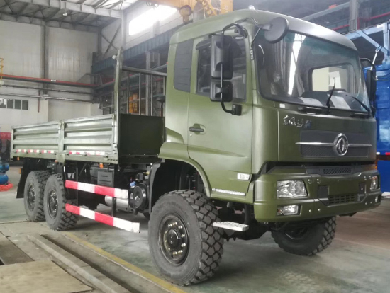 DFV2223GP6DJ型國六排放高端東風(fēng)天錦六驅(qū)越野車簡介:國六東風(fēng)天錦六驅(qū)越野卡車,采用高配大江車橋帶輪邊減速及差速鎖速比5.921,株齒ZQC1200分動箱,法士特大八擋變速箱,整車底盤按沙豹沙漠車標(biāo)準(zhǔn)設(shè)計(jì)制造更加結(jié)實(shí)耐用,車架尺寸達(dá)到5.3米,載重量可達(dá)到15噸,采用三角高端越野輪胎365/80R20。產(chǎn)品特點(diǎn)及用途:純正越野車,輪減車橋,帶輪、軸間差速鎖,選裝全時六驅(qū)帶軸間差速鎖,適合道路惡劣的山區(qū)、林區(qū)、礦山、淺表沙地等地域使用。