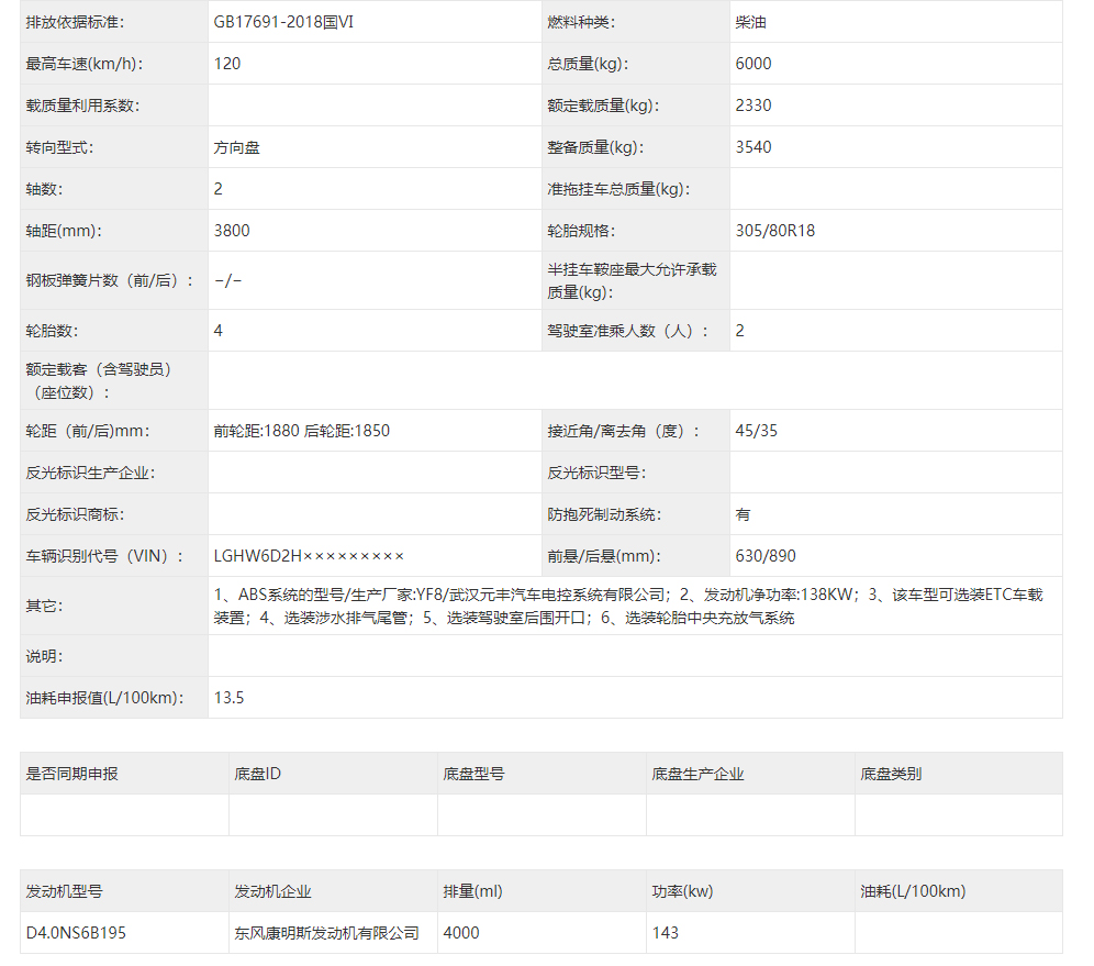 東風(fēng)猛士民用版EQ2063EYY6J型長(zhǎng)頭單排四驅(qū)越野底盤是東風(fēng)越野車公司針對(duì)民用方面的首款軍轉(zhuǎn)民產(chǎn)品代表,其繼承東風(fēng)軍用猛士的正規(guī)血統(tǒng),品質(zhì)優(yōu)異,技術(shù)過(guò)硬。東風(fēng)猛士民用版EQ2063EYY6J采用東風(fēng)猛士M50型四驅(qū)底盤改造而成,采用東風(fēng)康明斯D4.0NS6B195型國(guó)六柴油發(fā)動(dòng)機(jī),195馬力 ,排量4L帶增壓,最大扭矩600/1100-2200(N.m/r/min);猛士5擋軍用手動(dòng)變速箱;分動(dòng)箱為四輪全時(shí)驅(qū)動(dòng)帶高低擋;軸距3800mm;整備質(zhì)量3540kg;核定載質(zhì)量2460kg;輪胎采用305/80R18MPT全鋼子午線輪胎,帶自動(dòng)中央充放氣系統(tǒng);整車總質(zhì)量6000kg,國(guó)六B排放全國(guó)可上黃牌,整車尺寸:5320*2310*1950mm;最小離地間隙388mm,最大垂直越障400mm,通過(guò)性強(qiáng),適應(yīng)高海拔極寒極熱地區(qū),全國(guó)暢行無(wú)阻,最高車速可達(dá)120km/h。