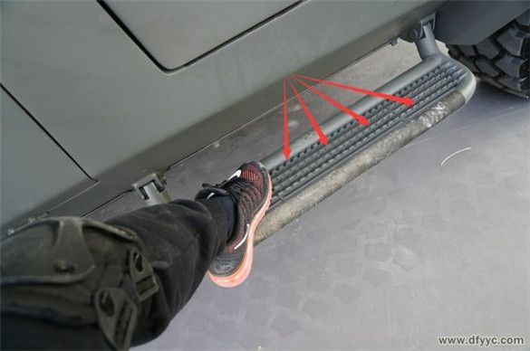 紅色箭頭:位于車體兩側車門下端加裝的可收起折疊的防滑踏板。