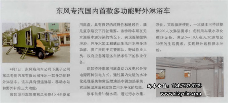 > 新聞中心 > 技術(shù)文獻(xiàn) > 東風(fēng)專(zhuān)汽推出國(guó)內(nèi)首款東風(fēng)四驅(qū)多功能野外淋浴車(chē)