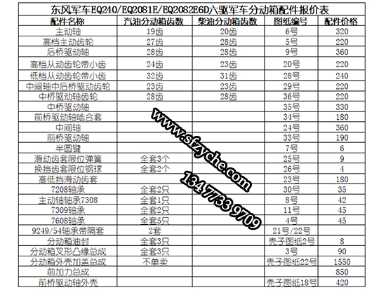 東風(fēng)軍車EQ240/EQ2081E/EQ2082E6D六驅(qū)軍車分動(dòng)箱常規(guī)易損件清單: