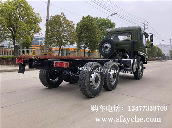 國六排放東風天錦六驅越野底盤配置,東風天錦D530一排半駕駛室,6×6驅動,康明斯B6.2NS6B210國六發(fā)動機210馬力,最大扭矩:850N.m/1100-1700rpm,排量6.2L、韶齒手動六檔變速箱,東風德納車橋,前驅動橋5噸雙聯半軸結構,中后橋都為軍工德納5噸驅動橋,315/80R22.5大花紋越野輪胎,280mm雙層大梁,軸距3500+1250mm,電動玻璃,方向助力,斷氣剎,ABS,大燈自動調節(jié),自動調整臂,原廠空調。車架可利用尺寸5000mm。