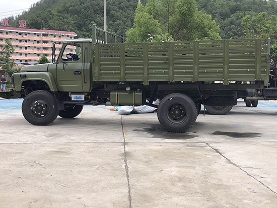 東風(fēng)牌EQ1093F型四驅(qū)載貨汽車詳細(xì)配置:采用康明斯B170-33柴油發(fā)動(dòng)機(jī),機(jī)械式六檔變速箱,軸距3950mm,單片干式φ325mm離合器,2.7T驅(qū)動(dòng)前橋, 7.8T驅(qū)動(dòng)后橋,232×75×6.5 mm車架,9.00-20尼龍?zhí),東風(fēng)140尖頭單排駕駛室,斷氣剎,動(dòng)力轉(zhuǎn)向。