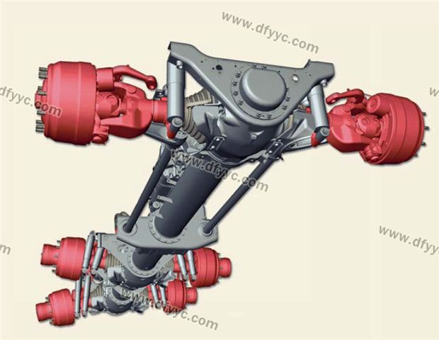斷開式車橋是太脫拉另一與眾不同之處,這幫助太脫拉這樣的重型卡車實(shí)現(xiàn)了全輪獨(dú)立懸架,允許車輪有較大的跳動空間,大大提高了整車在極端路況下的通過能力,尤其是通過臺階、壕溝、扭曲路的能力。太脫拉在空載的時(shí)候車輪是呈內(nèi)八字的大外傾角姿態(tài),行駛的時(shí)候只有輪胎的外側(cè)胎肩接觸地面,而滿載的時(shí)候卻是呈負(fù)外傾的姿態(tài),這因?yàn)槠鋽嚅_式車橋?qū)嶋H上是單橫擺臂的結(jié)構(gòu)所造成的,只要使用特制的輪胎,其輪胎磨損情況可以有效的改善。