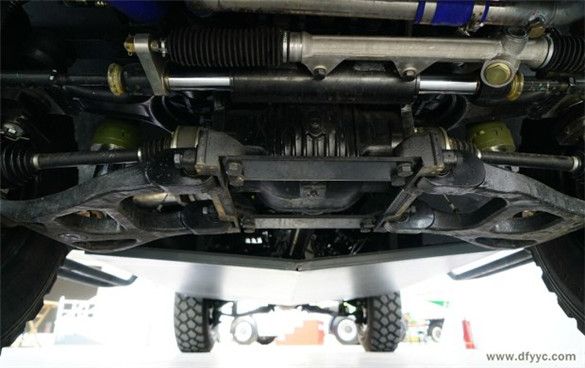 東風(fēng)四驅(qū)裝甲防雷反恐戰(zhàn)車的四驅(qū)系統(tǒng)全部國(guó)產(chǎn)化并非一步到位,經(jīng)過1代猛士基型車、標(biāo)準(zhǔn)2代猛士裝甲車、長(zhǎng)軸距2代猛士裝甲車近10年的發(fā)展積累而來。而這種通過引進(jìn)技術(shù)、分布國(guó)產(chǎn)、吸收改進(jìn),到全部國(guó)產(chǎn)化并掌握知識(shí)產(chǎn)權(quán)的發(fā)展模式,已經(jīng)成為包括東風(fēng)特種汽車在內(nèi)多家軍裝企業(yè)的生產(chǎn)模式。在一個(gè)較高的起點(diǎn)上,用更短時(shí)間研發(fā)全新裝備,已經(jīng)脫離單純的購買、組裝的非可持續(xù)發(fā)展模式。 上圖是東風(fēng)四驅(qū)裝甲防雷反恐戰(zhàn)車底盤特寫。 東風(fēng)四驅(qū)裝甲防雷反恐戰(zhàn)車采用實(shí)時(shí)四驅(qū)系統(tǒng),包括前后差速器以及分動(dòng)器和控制系統(tǒng)全部國(guó)產(chǎn)化。帶有自動(dòng)調(diào)節(jié)輪胎壓力的系統(tǒng),具備5萬公里行駛無故障能力。為了提升東風(fēng)四驅(qū)裝甲防雷反恐戰(zhàn)車通過性,加裝了中央差速鎖。